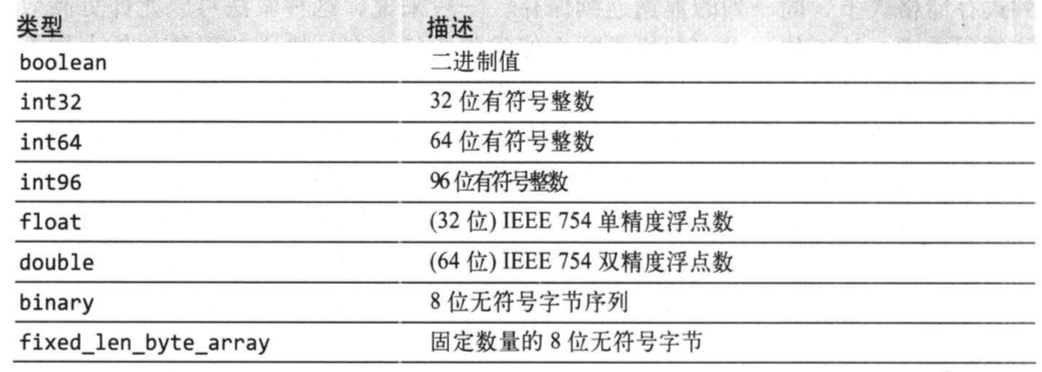 Parquet的原子类型: