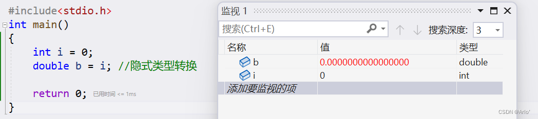 double b = i;并不是将i直接赋值给b,而是用i创建了一个临时变量,再将临时变量赋值给b,i的值并未改变,