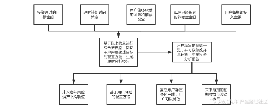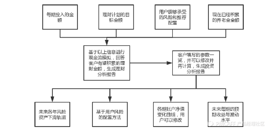 b) 客户理财规划咨询功能:根据客户的配置方案预测客户的长期资产年化收益,并为客户的不同理财目标和理财时不同的问题进行服务。