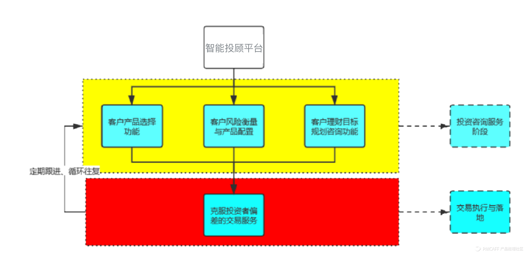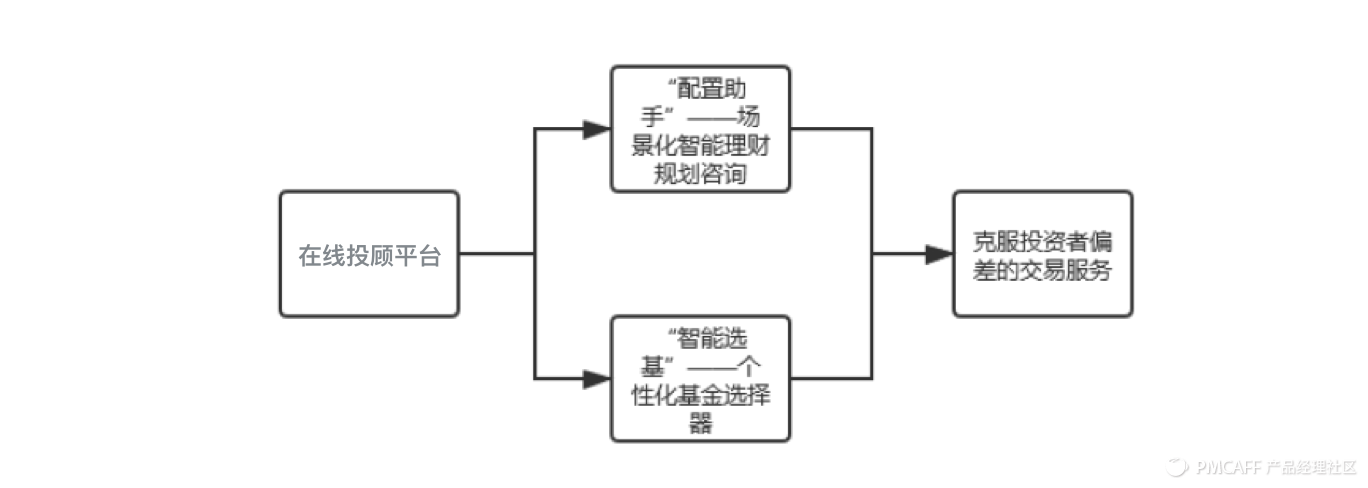 “智能选基”:通过基金评价的方法,让客户能够在自己的根据自身的偏好挑选基金。在咨询环节结束后,同样使用克服投资者偏差的交易服务来为客户长期投资保驾护航。