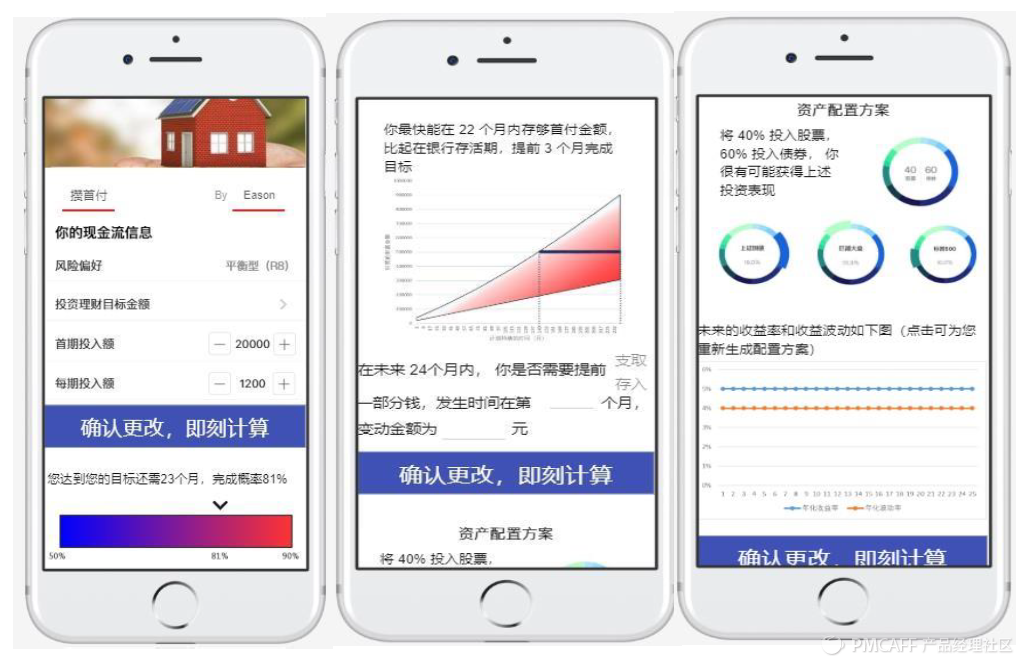 c) 拟人化:现在公众对于智能理财产品并不是十分信任,很大原因是智能投顾看起来就像是一个“黑箱”,让人觉得很生硬。因此,我们可以使用更加柔性的设计来完善我们的产品体验,使产品更加便于人们接受。