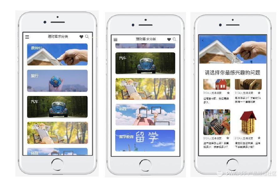 在APP 设置一个智能投顾的图标,点击之后展现出几个规划场景: