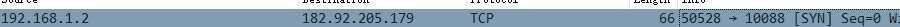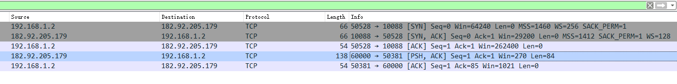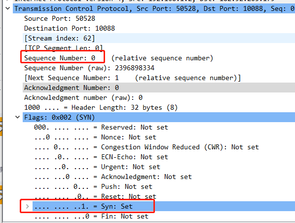 可以看到,客户端发起一个SYN请求,初始序列号为0