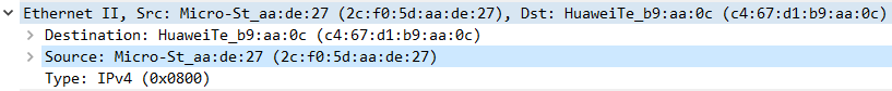 我们点开这个字段,从该字段中可以看到相邻两个设备的MAC地址