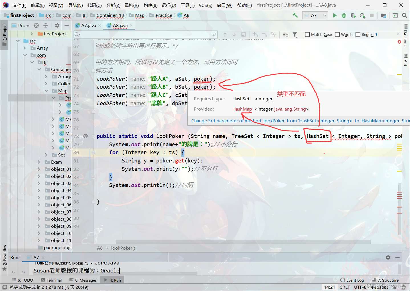 String value = ss.getValue();System.out.println(key+"老师教授的课程为:"+value);}System.out.println("(方式二 键值对对象找键找值)");System.out.println("-----------");//5.利用Map,输出所有教JSP的老师