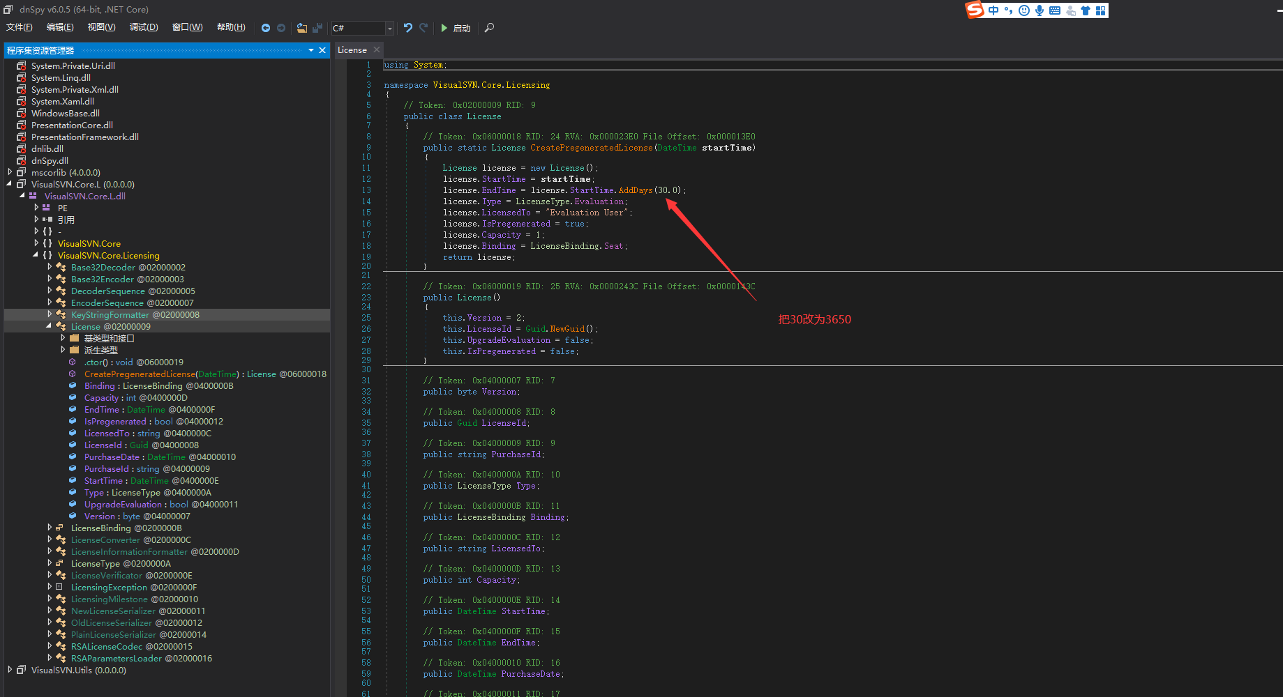 找到如下方法;把30天改为3650天,当然你也可以为8888,9999,6666 总之想要多少天就改为多少天~(但是不能太大,否则会失效)