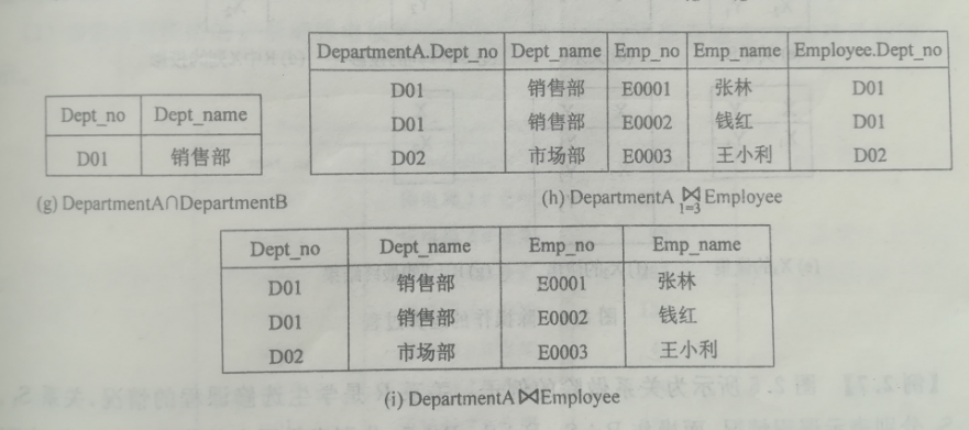 为等于的连接叫等值连接,自然连接 ⋈ /*它是等值连接的特殊情况,结果集中公共的属性只保留一个------去除重复列。两表关联,外键主建出现在同一集合里(外键和主键就是重复的列,要去除一列),2*/自然,