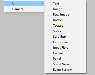 创建UI控件时,如果没有Canvas和EventSystem系统会自动创建。