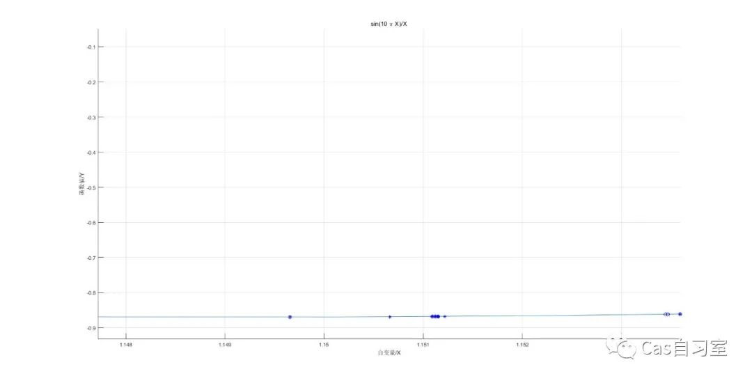 运行上述代码后可得到结果为:取值点X=1.1497,最小值Y=-0.86977