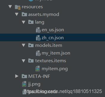 在资源文件下建文件夹lang ,新建两个json文件,一个zh_cn.json ,一个en_us.json 。(英文是为了让mod更好的传播)