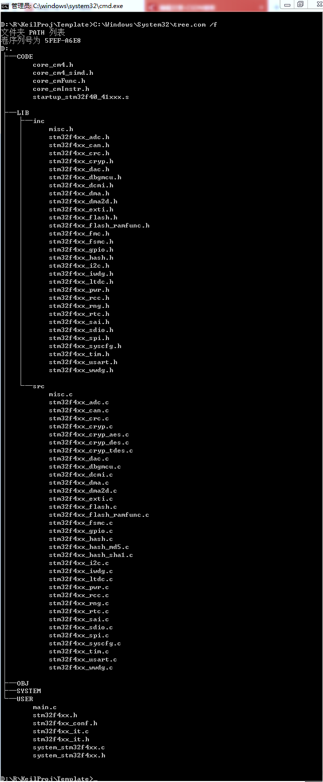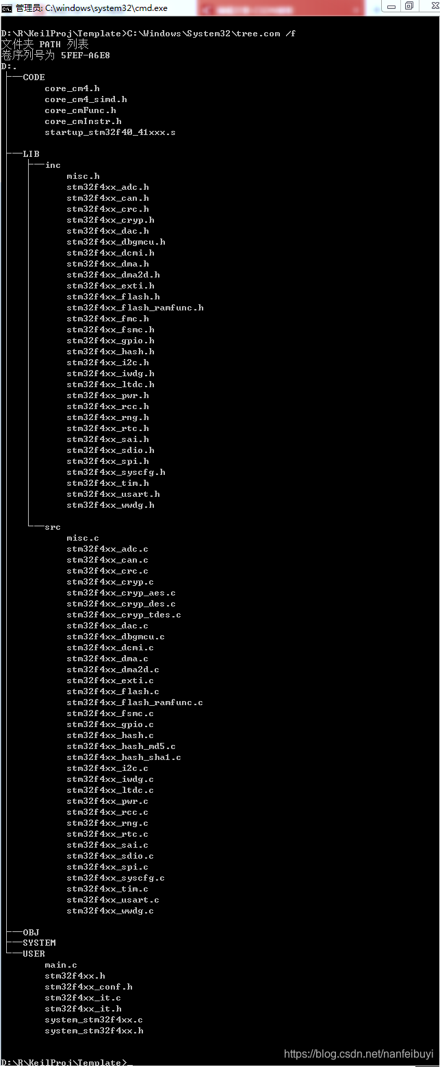 在命令行输入:C:\Windows\System32\tree.com /f