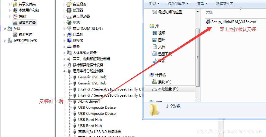 6.2 安装J-link驱动:双击运行Setup_JLinkARM_V415e.exe (不用接线也可以安装成功)