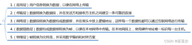 - 表示层:格式/压缩/加密——快速传递/安全传递