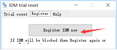 如果安装完成后,打开IDM,跳出假冒序列号的界面或者注册的界面,此时找到源文件夹下的两个文件。首先是以管理员身份运行IDM重置试用日期和注册假冒序列号工具.exe,点击register idm now按钮。