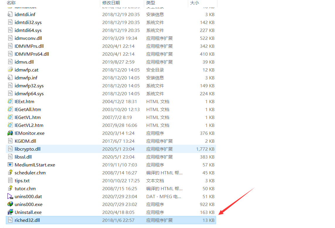 然后是消除注册窗口文件,点击原文件下的IDM消除注册窗口文件的文件夹,将这里的riched32.dll文件复制到IDM安装目录下面,替代该目录下的riched32.dll。接下来介绍如何找到IDM的安装目录。点击桌面下的idm软件,右键找到打开文件所在的位置。进入该目录下,然后将riched32.dll复制到该目录下即可。完成这些步骤即可使用了。