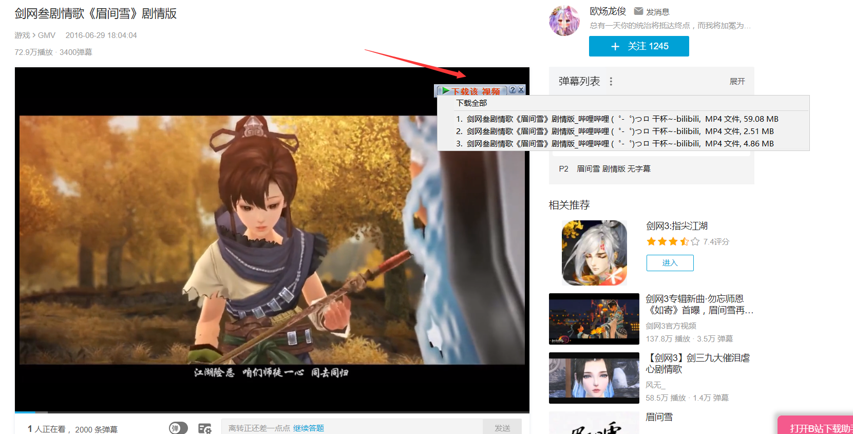 比如随便打开一个网站,比如B站。在视频的上方就会出现idm的下载该视频的小图标,点击选择你要下载的类型。