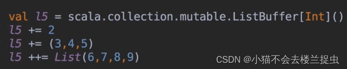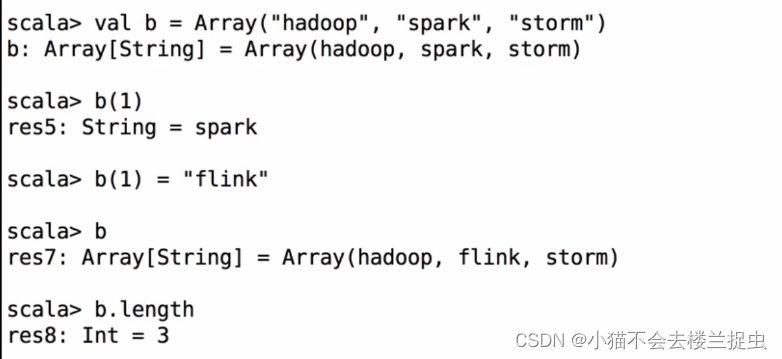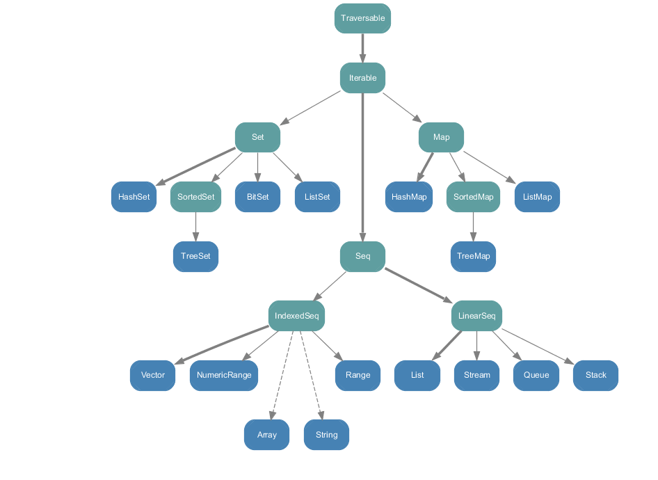 4. Scala 的集合有三大类:序列 Seq、集 Set、映射 Map,所有的集合都扩展自 Iterable 特质 在 Scala 中集合有可变(mutable)和不可变(immutable)两种类型,immutable 类型的集合 初始化后就不能改变了(注意与 val 修饰的变量进行区别)