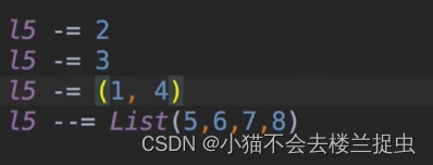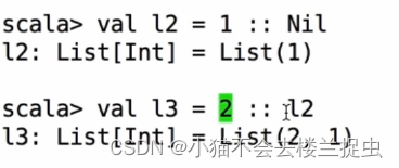 def whoList(list : List[String]): Unit = list match {//只匹配数组中含有一个"zhangsan"的casecase "zhangsan"::Nil => println("This is zhangsan")case "zhangsan"::"lisi"::Nil => println("This is zhangsan and lisi")//匹配数组中只含三个元素的case(对元素没有要求)case x::y::z::Nil => println("This is x,y,z")//匹配第一个为wangwu,后可有可无任意多个元素的casecase "wangwu"::tail => println("This is wangwu and others")case m :: n => println("匹配拥有head,tail的List集合")case _ => println("who is it?")}