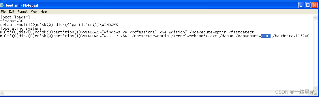 虚拟机boot.ini参数/port=com1就是正确的。(如果打印机没移除,就需要改为/prot=com2)