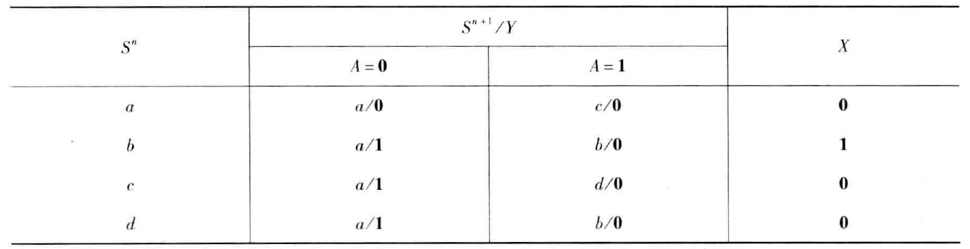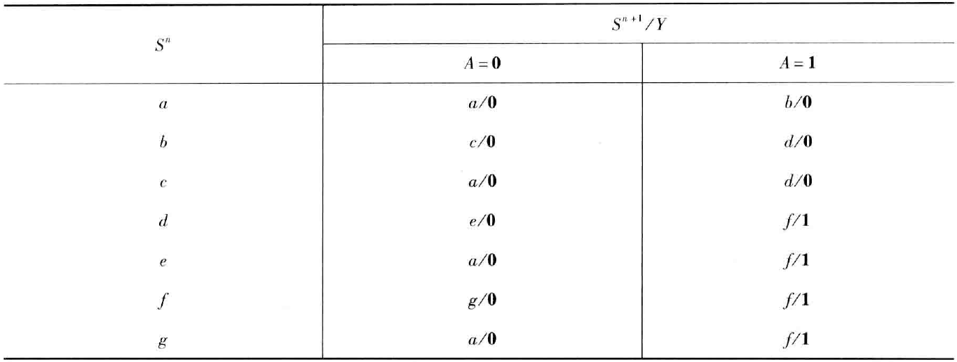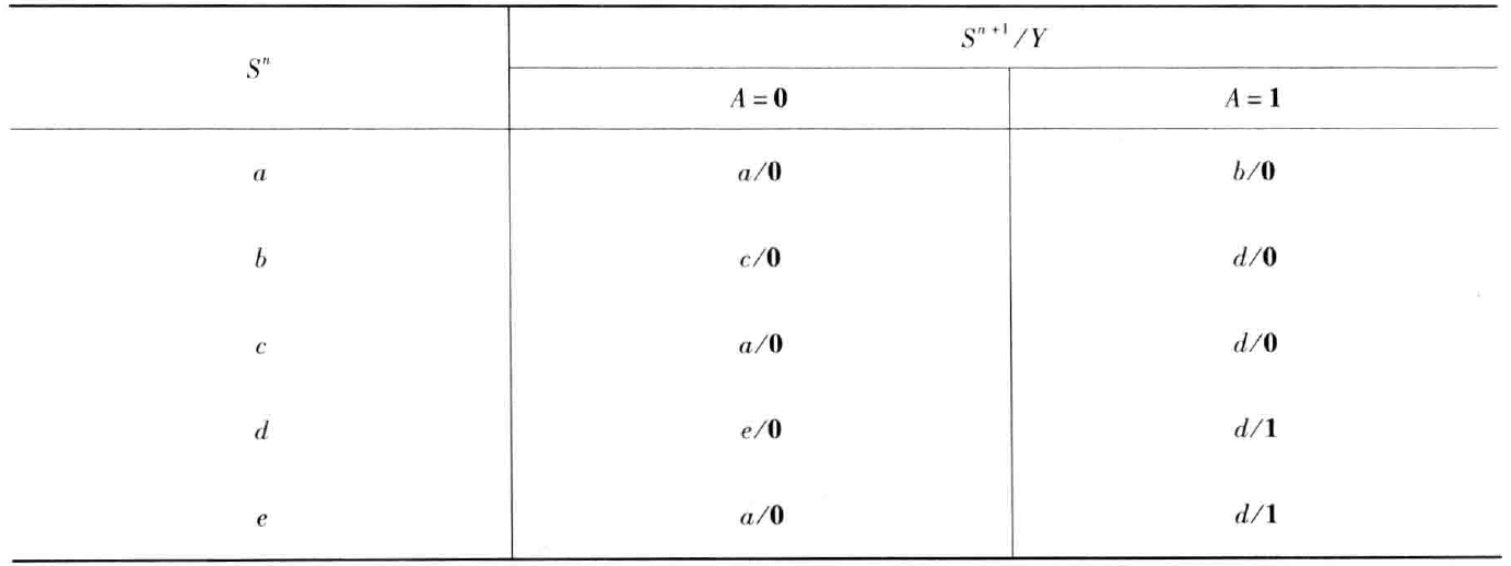 是等价状态,可以合并(状态等价的定义如下:如果两个状态分别作为现态,其任何相同输入所建立的次态及产生的输出均完全相同,则这两个状态称为等价状态,可参见4.1.2)。下表是(1)中原始状态表化简的结果:将状态