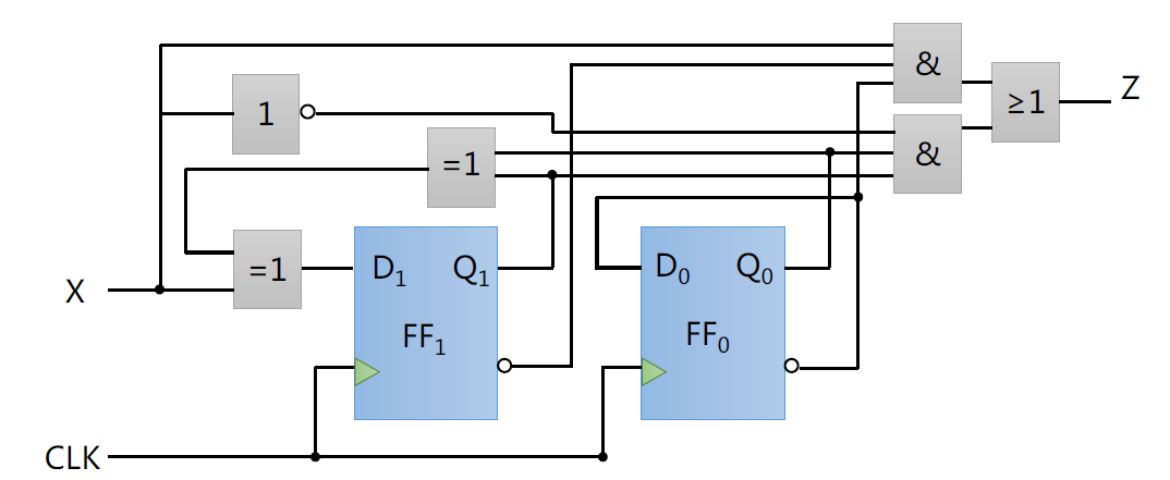 触发器设计一个给定原始状态图的逻辑功能的同步时序电路