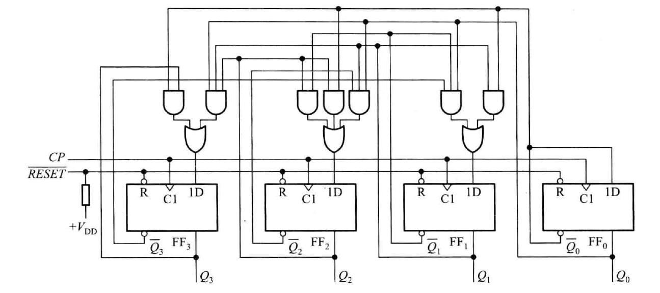 产生低电平脉冲,强制4个触发器进入0000的初始状态,待
