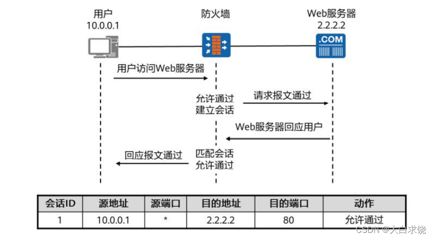 状态检测机制开启状态下,只有首包通过设备才能建立会话表项,后续包直接匹配会话表项进行转发。