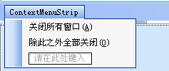 另外为了使得在Tab页面上可以关闭窗口,可以增加一个右键菜单,如下所示。