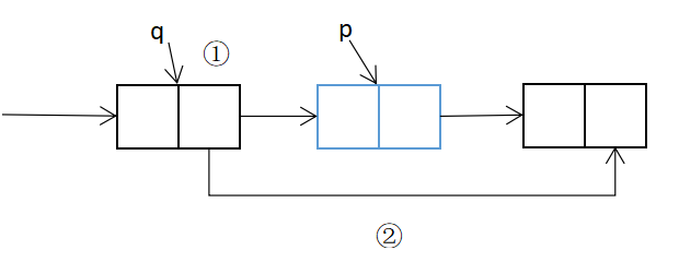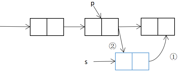 ①:s->next=p->next; 先1的目的是保存后边的结点数据,以免丢失。