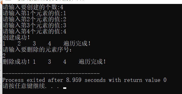 void Create(Linklist &L){L=(Linklist)malloc(sizeof(Lnode));L->next=NULL;Lnode *s,*p=L;int n,num;printf("请输入要创建的个数:");scanf("%d",&num);for(int i=1;i<=num;i++){printf("请输入第%d个元素的值:",i);scanf("%d",&n);s=(Linklist)malloc(sizeof(Lnode));s->data=n;p->next=s;p=s;p->next=NULL;}printf("创建成功!\n");