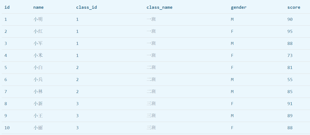 SELECT s.id, s.name, s.class_id, c.name class_name, s.gender, s.score