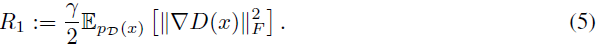 D 光谱中的尖峰可能表明它周期性地接收非常大的梯度,但我们观察到 Frobenius 范数是平滑的(附录 F),表明这种效应主要集中在前几个奇异方向上。 我们假设这种噪声是通过对抗训练过程进行优化的结果,其中 G 周期性地产生强烈扰动 D 的 batches。 如果这种频谱噪声与不稳定性有因果关系,一个对策是采用梯度惩罚,显式正则化 D 的雅可比矩阵的变化。 我们探索 R1 零中心梯度惩罚: