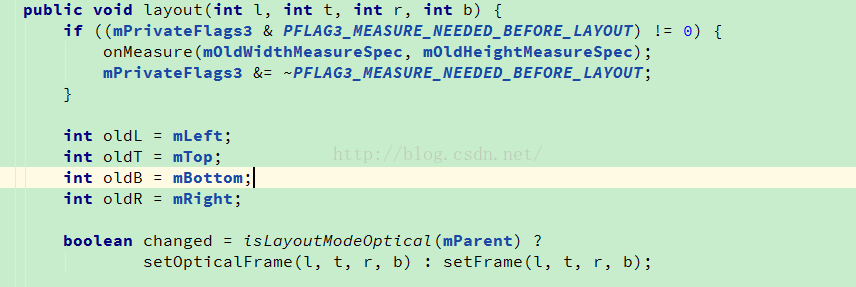 1)layout方法直接把四个参数赋值给对应的控件坐标变量(mLeft,mTop,mRight,mBottom),也就是确定了控件的区域;