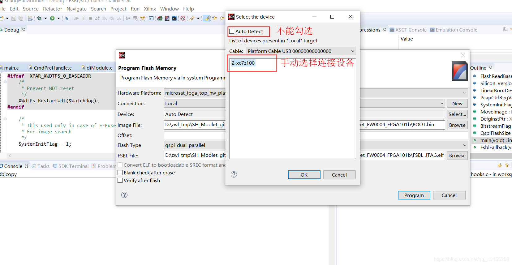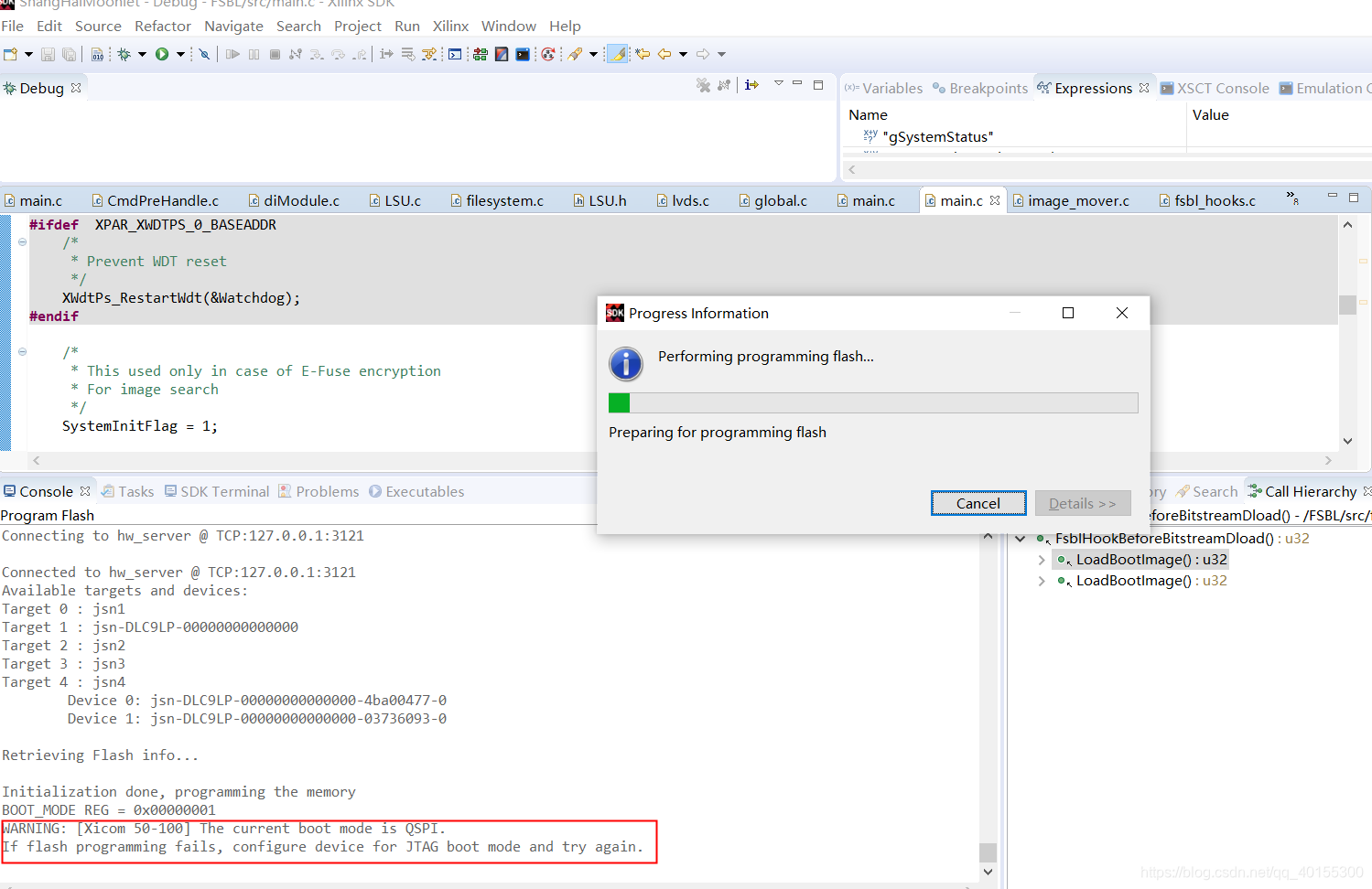 (5)固化过程中如果发现卡死,可以尝试采用重新打开xilinx SDK的方式进行恢复