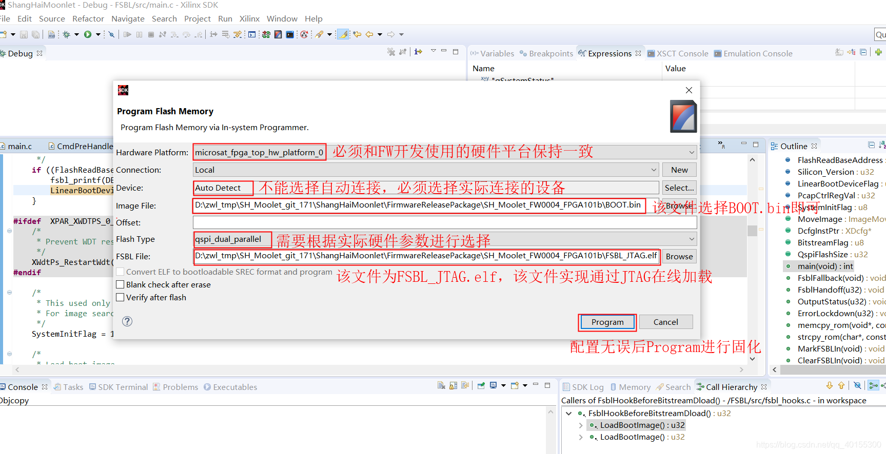 (2)生成BOOT.bin时使用的是FSBL.elf文件,固化过程中配置文件为FSBL_JTAG.elf文件