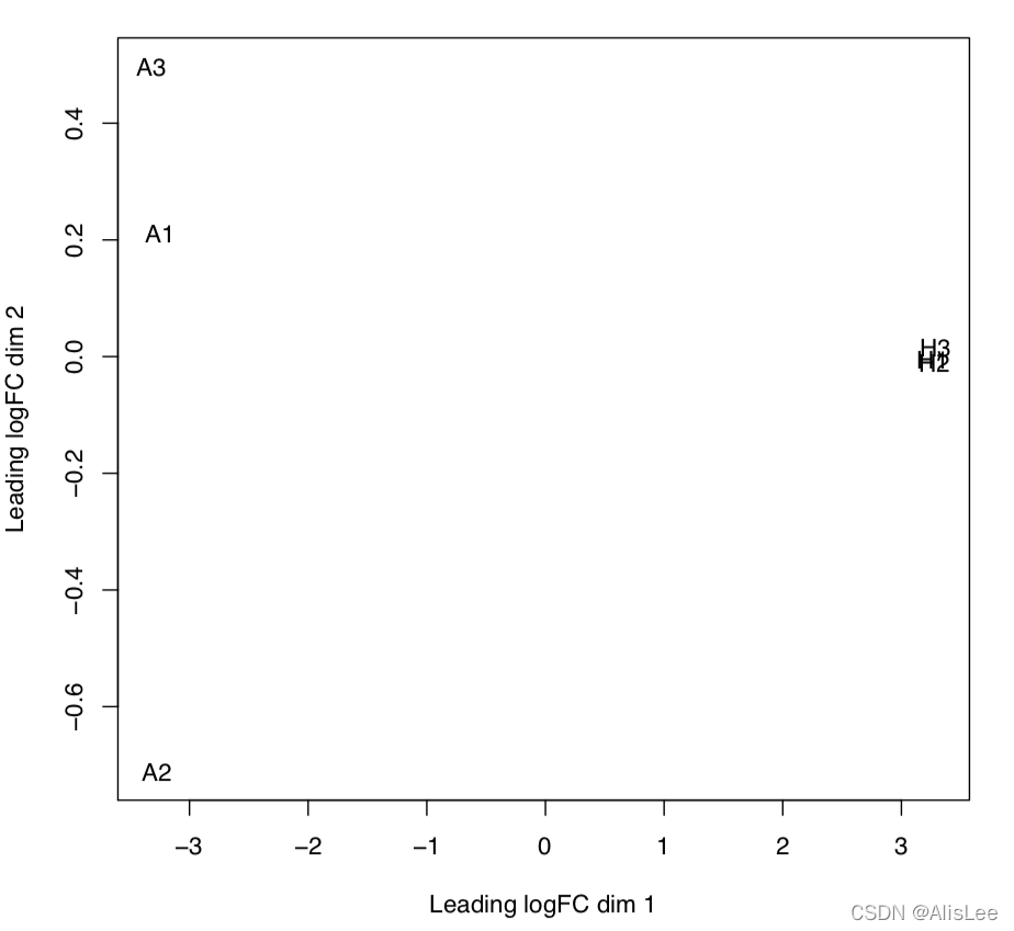 y <- calcNormFactors(y)y Note: 这里通过图形的方式来展示实验组与对照组样本是否能明显的分开以及同一组内样本是否能聚的比较近 即重复样本是否具有一致性