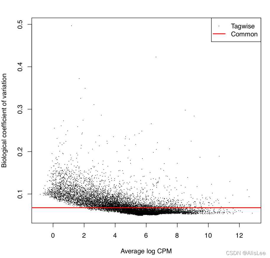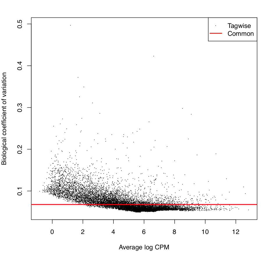 y <- estimateCommonDisp(y, verbose=TRUE)y <- estimateTagwiseDisp(y)pdf("BCV.pdf")plotBCV(y)dev.off()