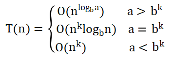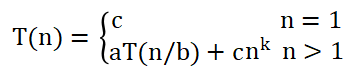 其中a,b,c,k都是常数。这个递推式描述了规模为n的原问题分解为b个规模为n/b的子问题,其中a个子问题需要求解,