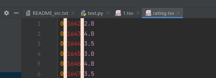 该rating.tsv文件没有表头,逐行读取方法如下: