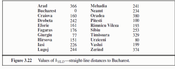 辅助信息:任意一个城市与Bucharest的直线距离