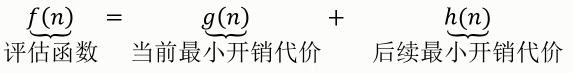 h(n) 表示从节点n到目标节点路径中所估算的最小开销代价值,