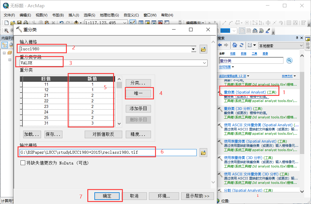 2.下载影像后进行重分类影像,因为影像原分类是二级分类,我这里需要的是一级分类就行了,具体详细的分类可以在下载时察看,在这里就不过多介绍了。分类操作如下: