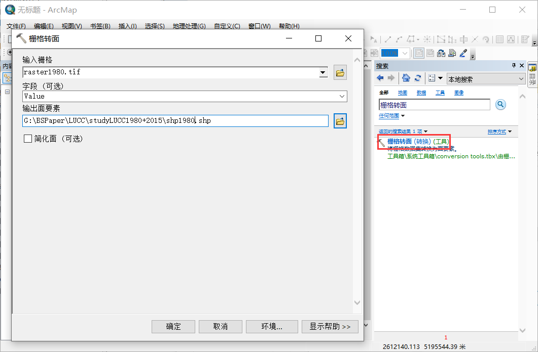 4.对上面裁剪出来的研究区进行栅格转面,操作步骤如下: