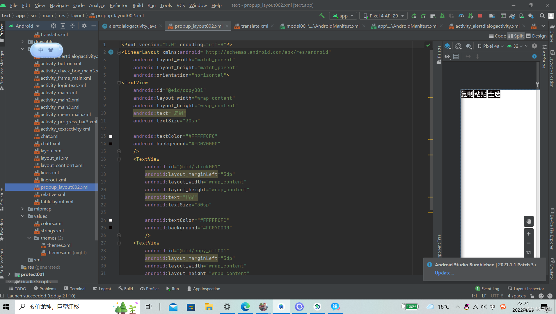 接着调用方法,将这个布局转换成view