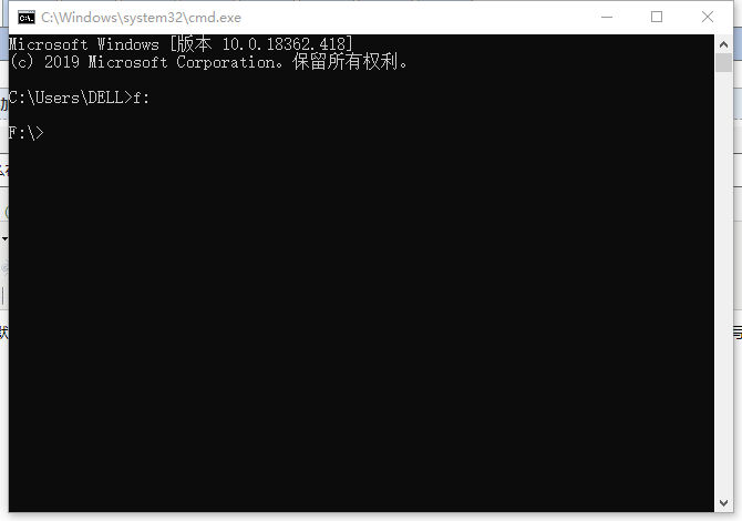 1.默认打开是在c盘,要是想要切换到其他盘,比如说F盘,需要在cmd命令窗口中输入f:或者是F:,不区分大小写,但是一定要忘了加冒号。