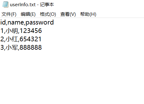 一般情况向下,要保存用户的数据,一个最简单的方法是吧用户数据据写入文件。例如,要保存用户密码信息,可以写入下面的文件中txt文件: