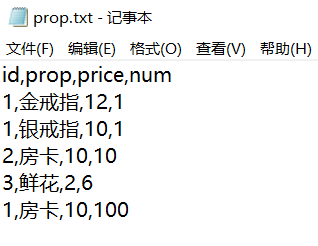 保存用户购买的道具prop.txt