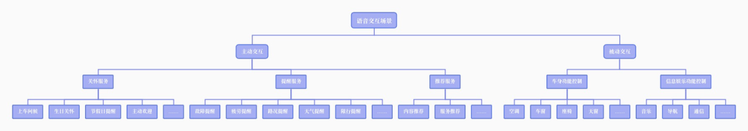 基于用户、场景、需求,以语音交互系统为起点,我们可以将智能座舱语音交互的场景抽象的分为主动交互场景和被动交互场景。