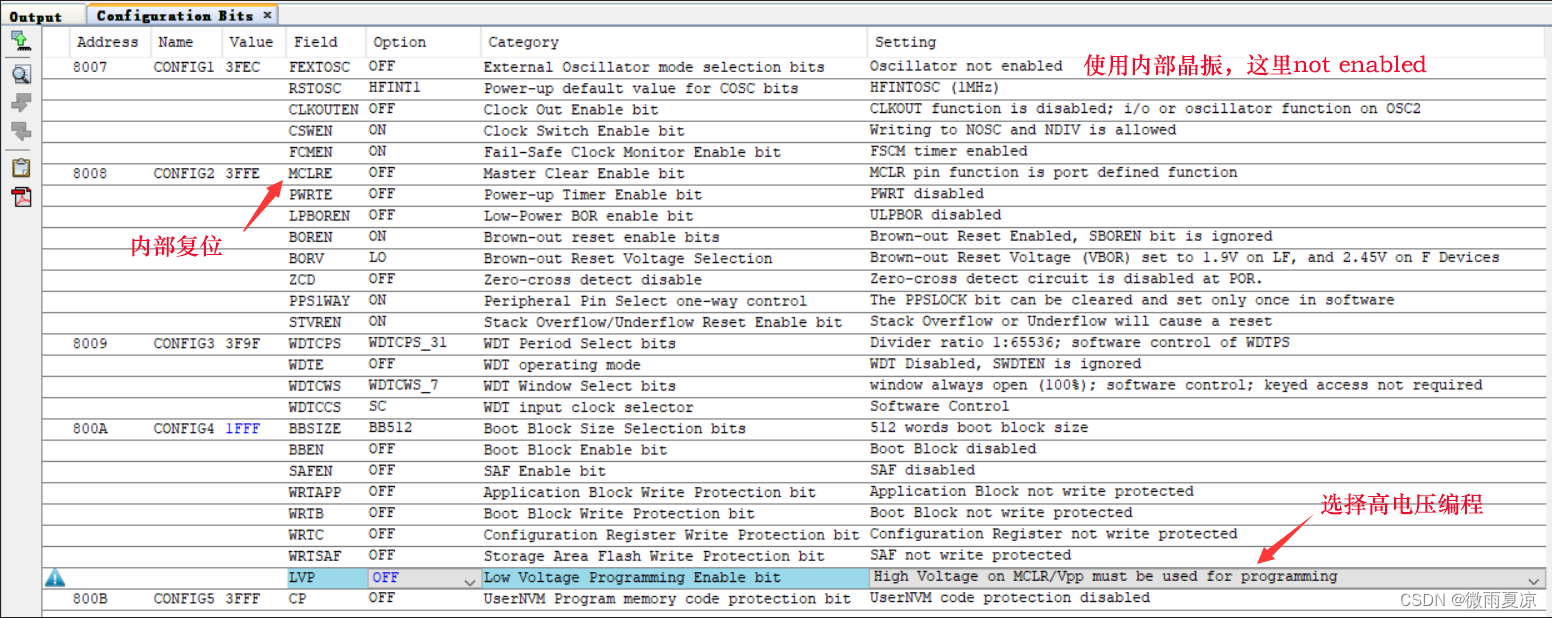 根据项目实际要求,选择合式的MCU配置位,特别要注意红色字体对应的部分