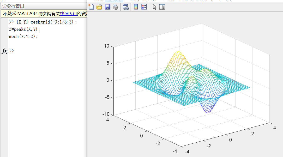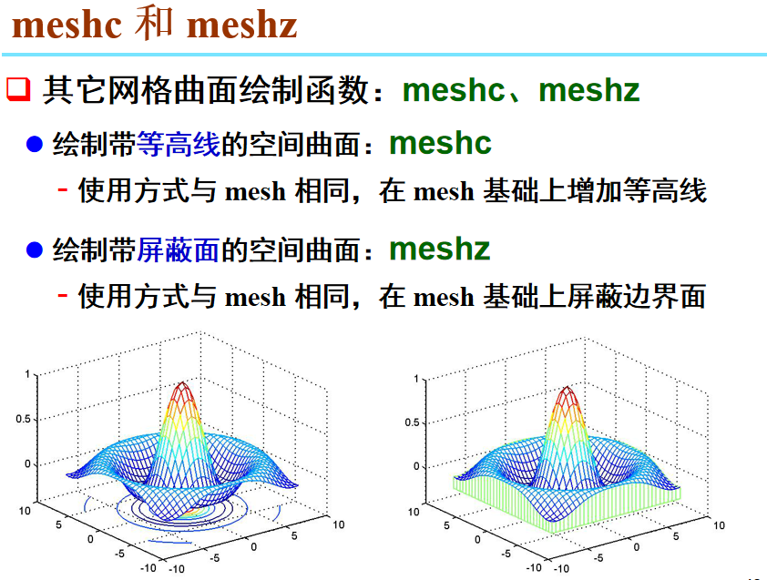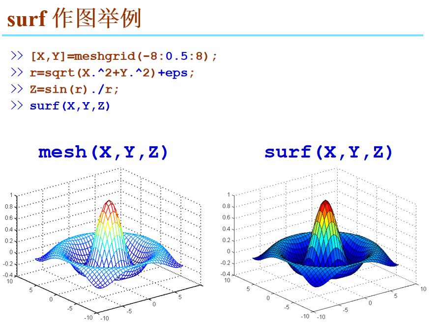 mesh 绘制网格图,surf 绘制表面着色的曲面图